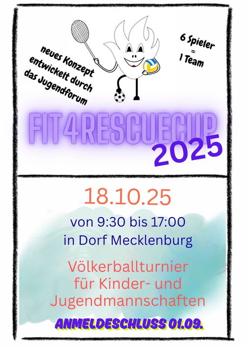Am 18. Oktober 2025 findet in der Mehrzweckhalle Dorf Mecklenburg der erste Fit4RescueCup der Kinder- und Jugendfeuerwehren statt.